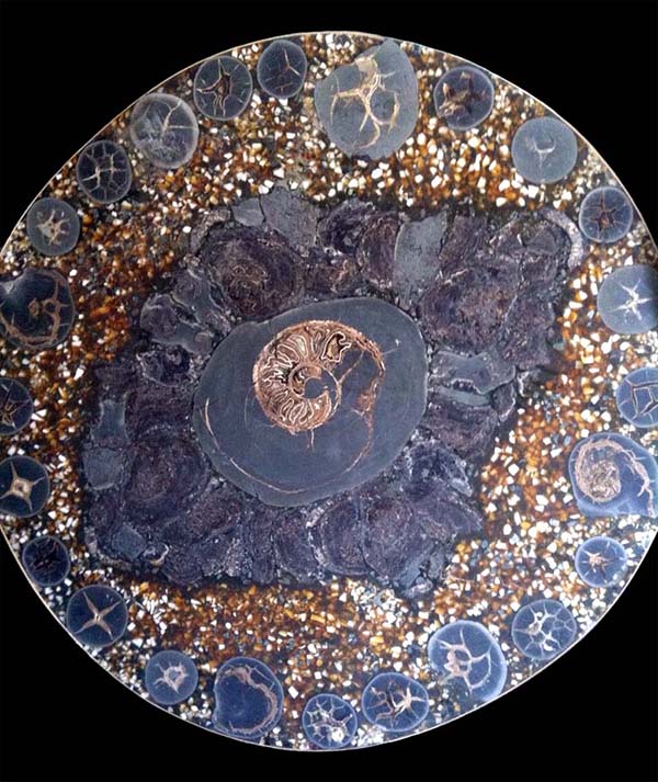 Здесь представлены образцы изделий из наших прото-камней. Основные направления использования - изготовление столешниц, которые потом монтируются на металлические и деревянные ножки. Возможны варианты экстравагантного исполнения - на основе ножек из рогов тура и другие. Еще есть направление каменных панно для вертикальной установки. Основой для них служит листовой шифер и другие доступные материалы. В качестве соединительного материала используется эпоксидная смола разных оттенков или специальные "живые" средства импортного исполнения. Промежуточный материал - мраморная крошка разных оттенков или любая другая каменная смесь. Исходя из фантазии мастера можно создавать великолепнейшие произведения, которые украсят интерьер и Вашу жизнь, создадут неповторимую атмосферу прикосновения к истории и сотворению жизни на планете Земля.